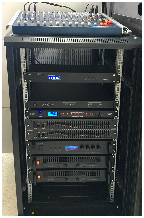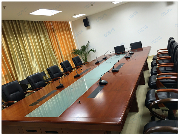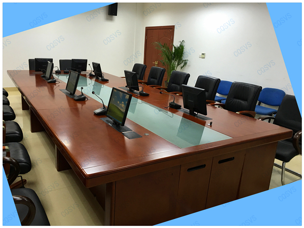 重慶某區電力局數字會議室,此次使用了SVS會議產品,8只手拉手會議話筒,8臺液晶升降顯示系統、SVS會議擴聲產品、LED 顯示拼接,以及后臺控制系統設備。