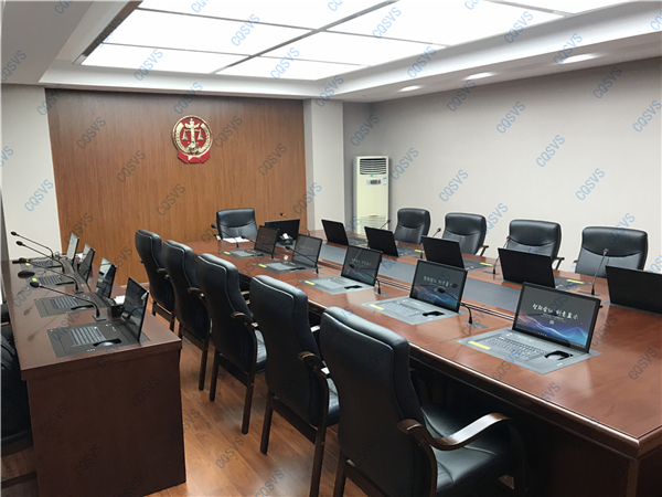 針對傳統會議的缺點,針對本項目,重慶迅控電子科技有限公司嚴格按照“綠色、智能、環保”的會議設計要求,結合法院的標準會議室建筑結構及相關設計標準進行設計,采用SVS翻轉器結合SVS無紙化會議系統,通過文件的電子交換實現會議的無紙化,實現文件傳輸網絡化,文件顯示電子化,文件編輯智能化,文件輸入輸出可控化。同時結合SVS會議發言系統、擴聲系統、中控系統以及海信全場景會議平板,在保證法院內部智能高效會議的基礎上,還可以輕松實現遠程交互式視頻會議。最后通過中控平板編程,可對會議室設備實現一鍵控制功能,極大的方便了操作者。獲得了業主的高度肯定!