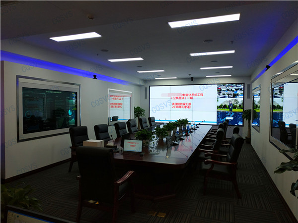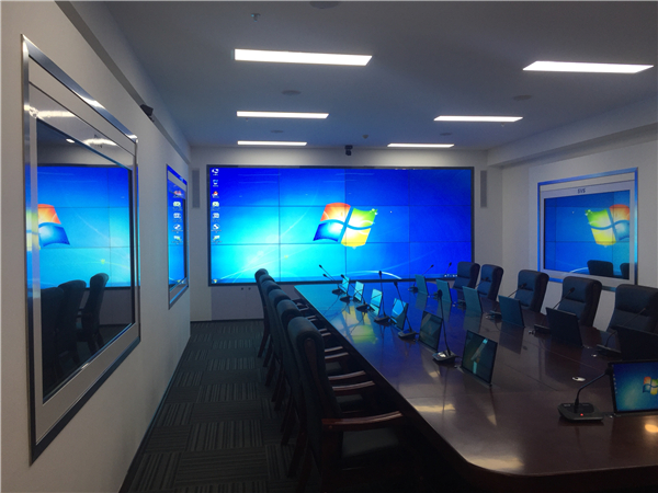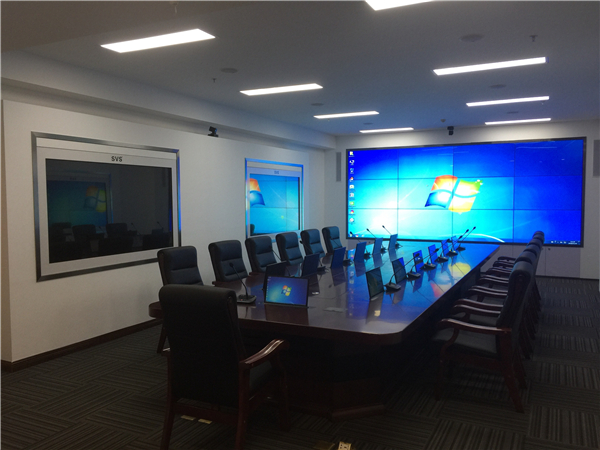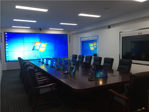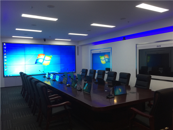 此次我司有幸參與重慶市某智慧城市智能化系統建設項目,經過現場考察反復溝通后確定采用顯示系統和會議系統相結合的方式打造智慧城市智能化會議工程。其中顯示系統用LG 55寸1.8mm通過3X5拼接的方式實現大屏拼接顯示,兩側則采用了SVS透明屏通過嵌入式方式進行安裝,實現美觀大方的大屏可視系統。會議系統采用SVS液晶升降器和OLED時鐘會議話筒實現無紙化會議系統,實現高效節能的會議模式。