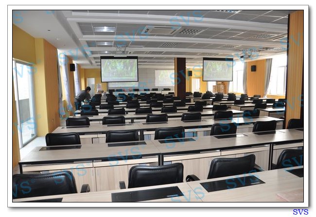 近期SVS為溫州市某銀行設計并打造一個無紙化數字培訓中心,從無紙化培訓為出發點,SVS為在場的每一個參加培訓的人員都配置電腦顯示系統,一共使用134臺液晶升降器,不單保證多媒體會議時可以使用電腦輔助顯示,在普通會議及培訓時,可以讓桌面更加整潔,SVS液晶升降器一直以來都以穩定、靜音、易控等特色,得到廣大客戶的厚愛,此次也不例外,通過SVS中央控制系統,根據客戶需求,設置多種展示模式,會場的液晶升降器可整體及分組控制,更加不同會議及與會人數需要進行智能化控制,為客戶節約更多會議資源;另配置會議發言系統、會議擴聲系統,通過中央控制系統整合,最后操作人員只需點擊觸摸屏,即可完成輕松控制。